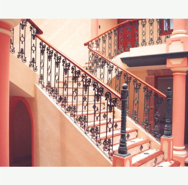 Armada con celosías fundidas en aluminio, ptr, solera y pasamanos metálico, en tramos designados, barandales: rectos, curvos y de escalera, acabado con pintura en polvo electrostática color a su elección.